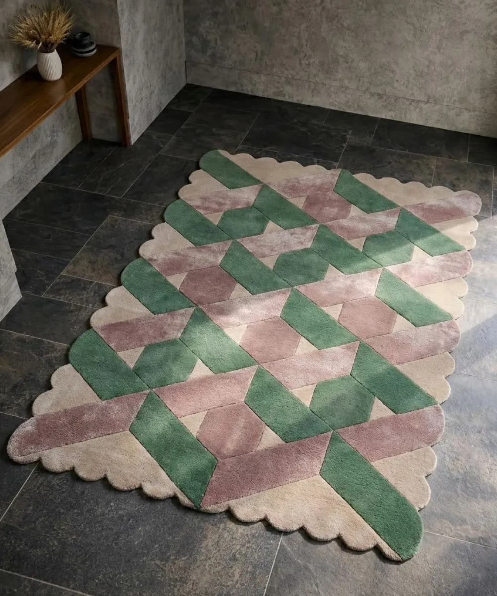 True quality takes time. Our rugs are hand-tufted using dense, premium wool to ensure a plush feel that machines cannot replicate. After tufting, we hand-carve the borders to give the scalloped edges a sharp, distinct definition. The result is a luxurious, thick texture that transforms your room.