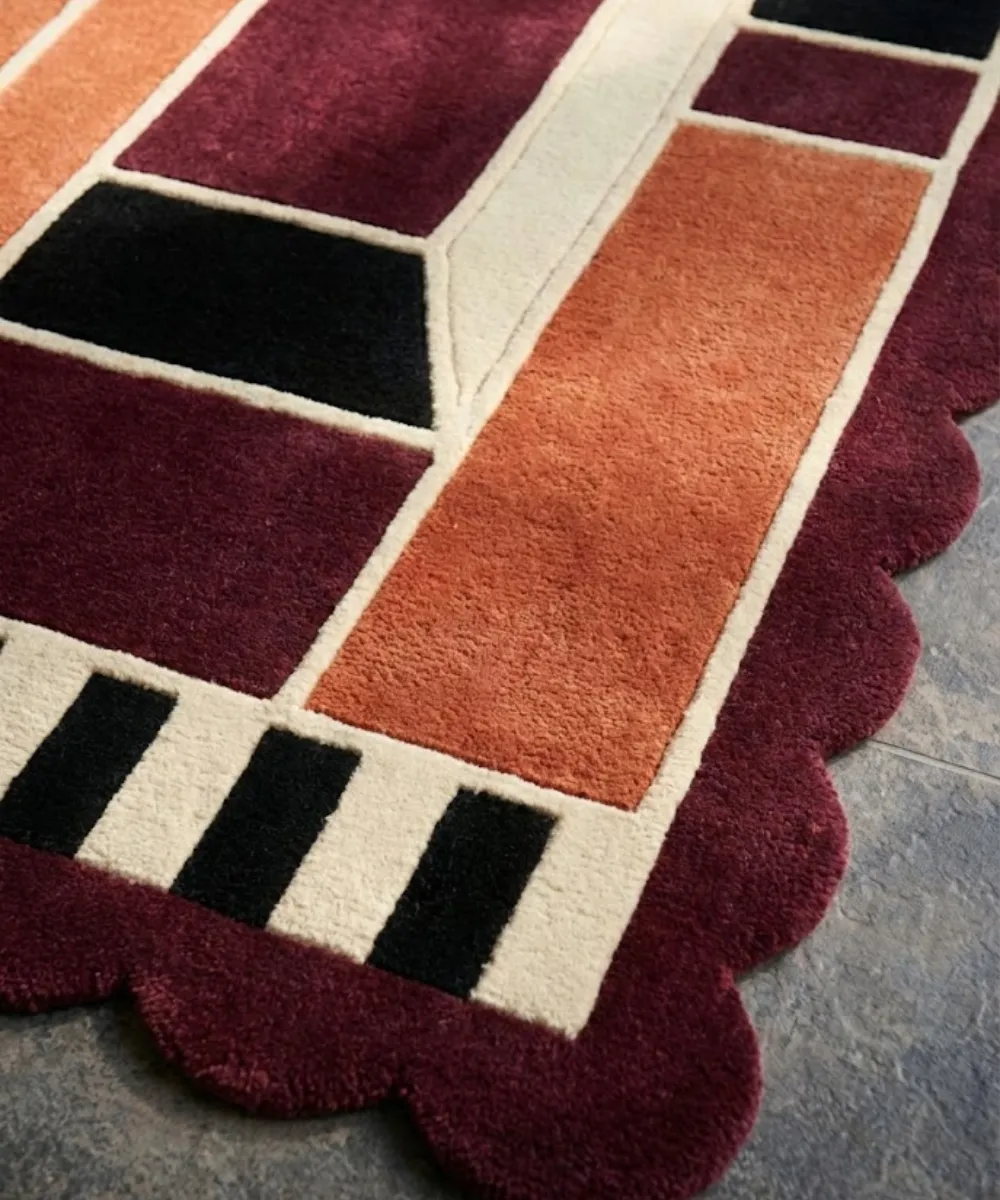 Custom sizes available on request. Explore abstract rugs designed to frame your space with intention from Scalloped Rugs exclusive collection.