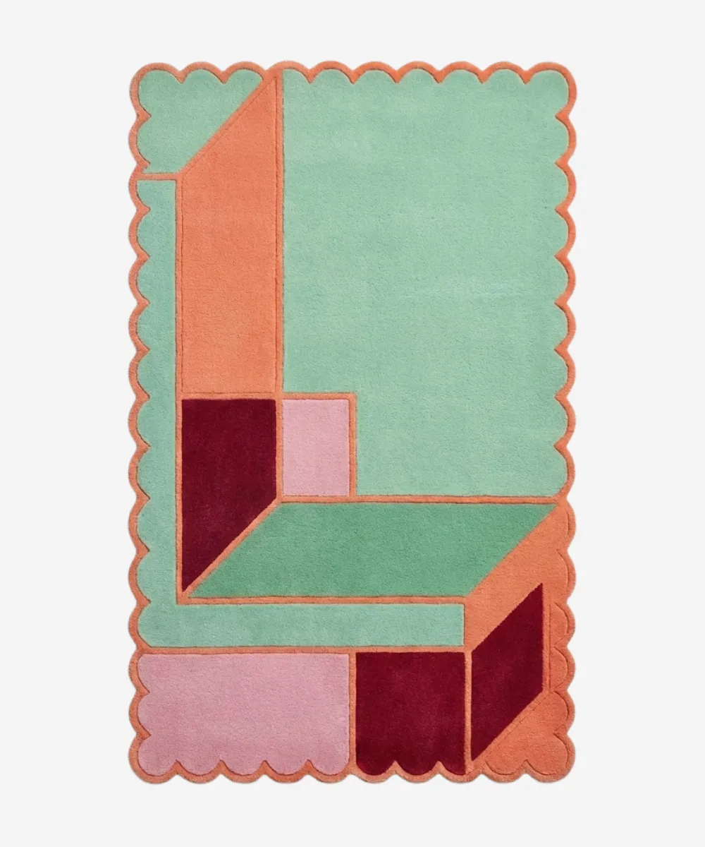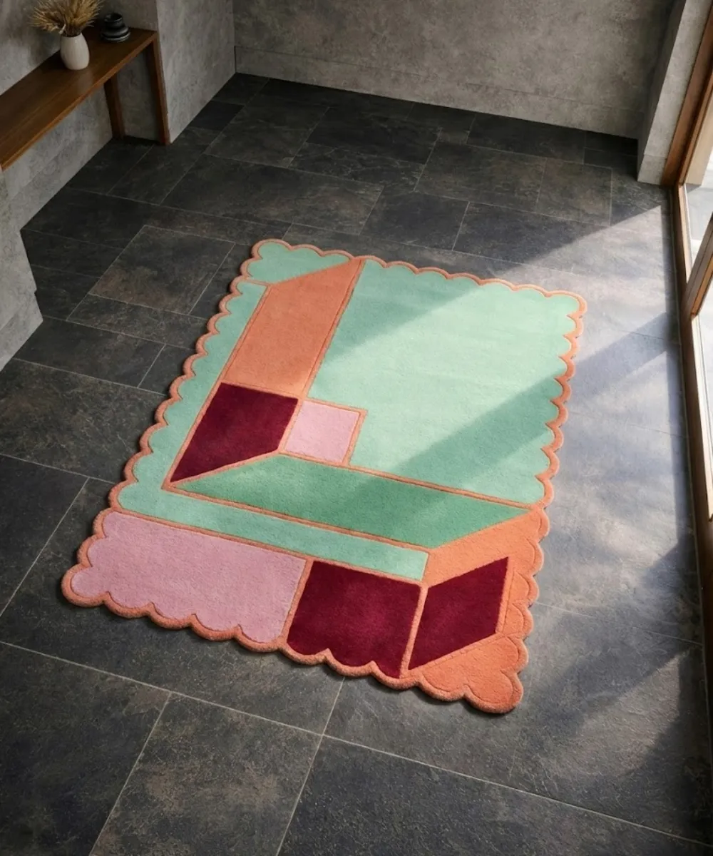 The Coral Courtyard is an abstract rug inspired by open courtyards bathed in soft light. Featuring gentle coral tones balanced with muted, contemporary shades, this unique wavy-edge rug brings warmth and openness into a space without overwhelming it. The design feels relaxed yet intentional, creating a welcoming atmosphere that suits both modern and transitional interiors.