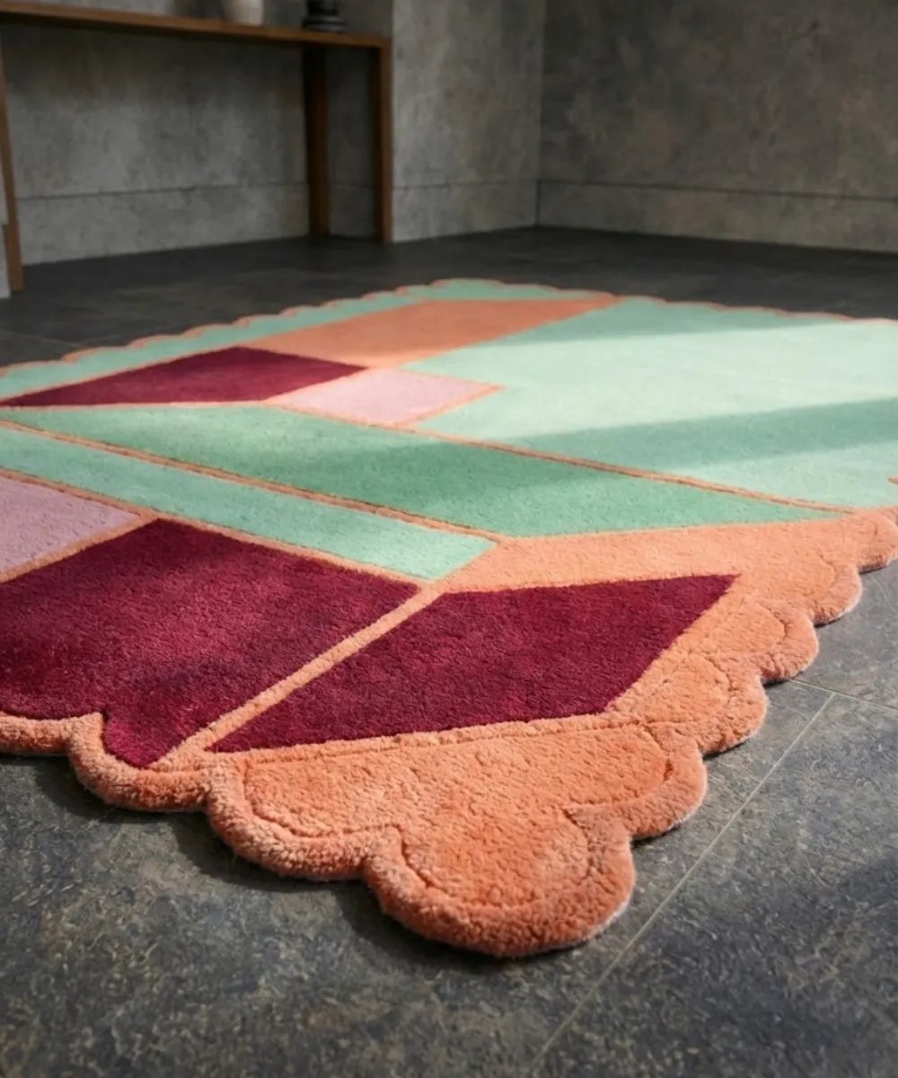 True quality takes time. Our rugs are hand-tufted using dense, premium wool to ensure a plush feel that machines cannot replicate. After tufting, we hand-carve the borders to give the scalloped edges a sharp, distinct definition. The result is a luxurious, thick texture that transforms your room.