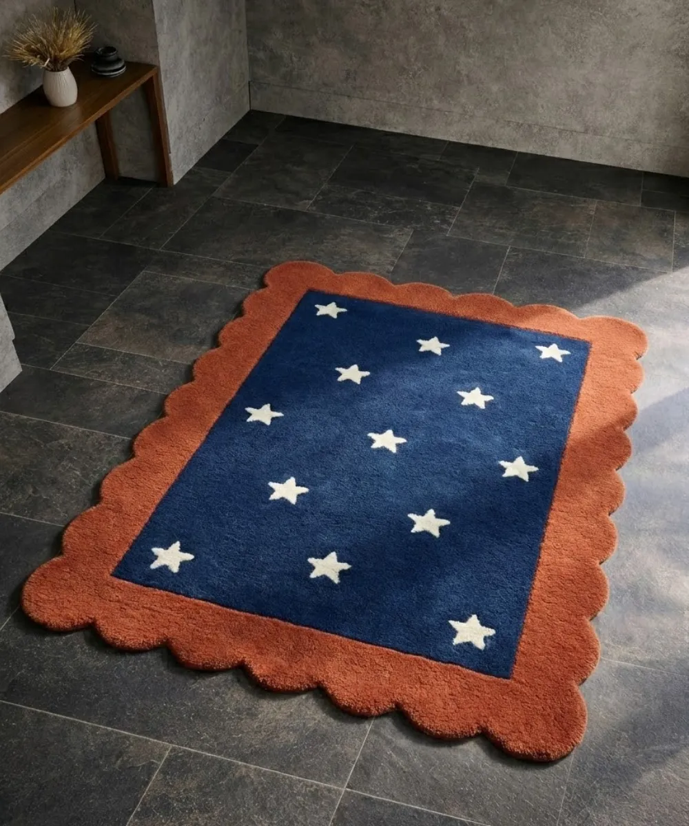 Hand-tufted from high-quality wool by skilled artisans, this woolen rug delivers a plush yet durable surface ideal for everyday use. This star pattern works beautifully as a bedroom rug, lounge rug, or creative space carpet, where mood and atmosphere matter as much as comfort.