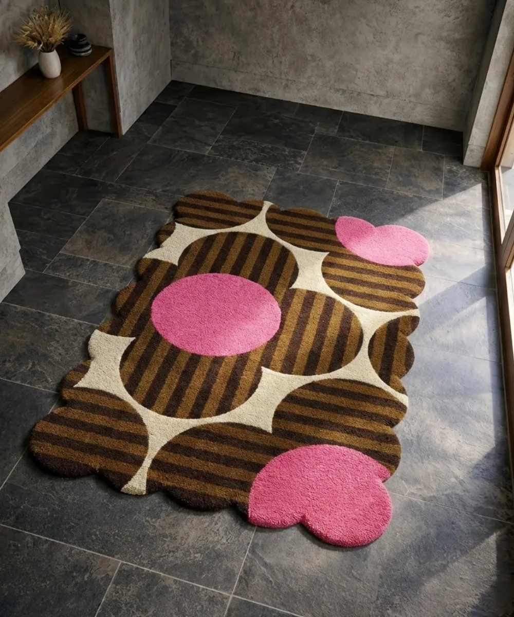 Hand-tufted from premium New Zealand wool, this scalloped floral rug offers plush comfort, lasting durability, and a rich texture that holds its beauty over time. The gently curved, scalloped edges enhance its organic flow, giving the rug a soft, sculptural presence. Ideal for living rooms and bedrooms, Dusky Bloom brings warmth without overpowering the space. Style it with neutral walls, warm wooden furniture, and soft linen cushions to highlight its earthy charm. Made for modern homes, this modern rug blends style and practicality with ease.