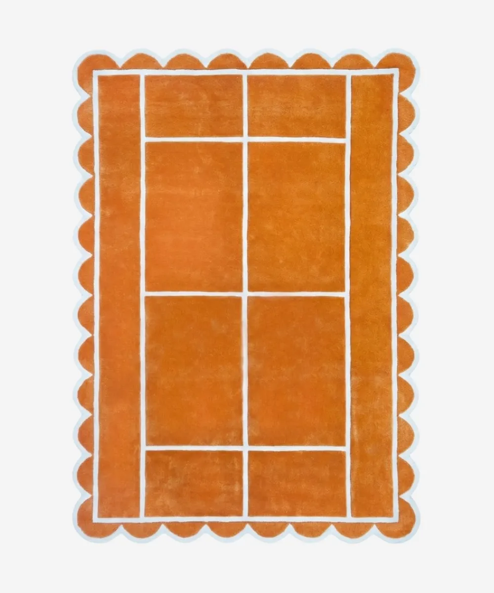 Custom sizes available on request. Explore geometric rugs crafted for modern homes from Scalloped Rugs exclusive collection.