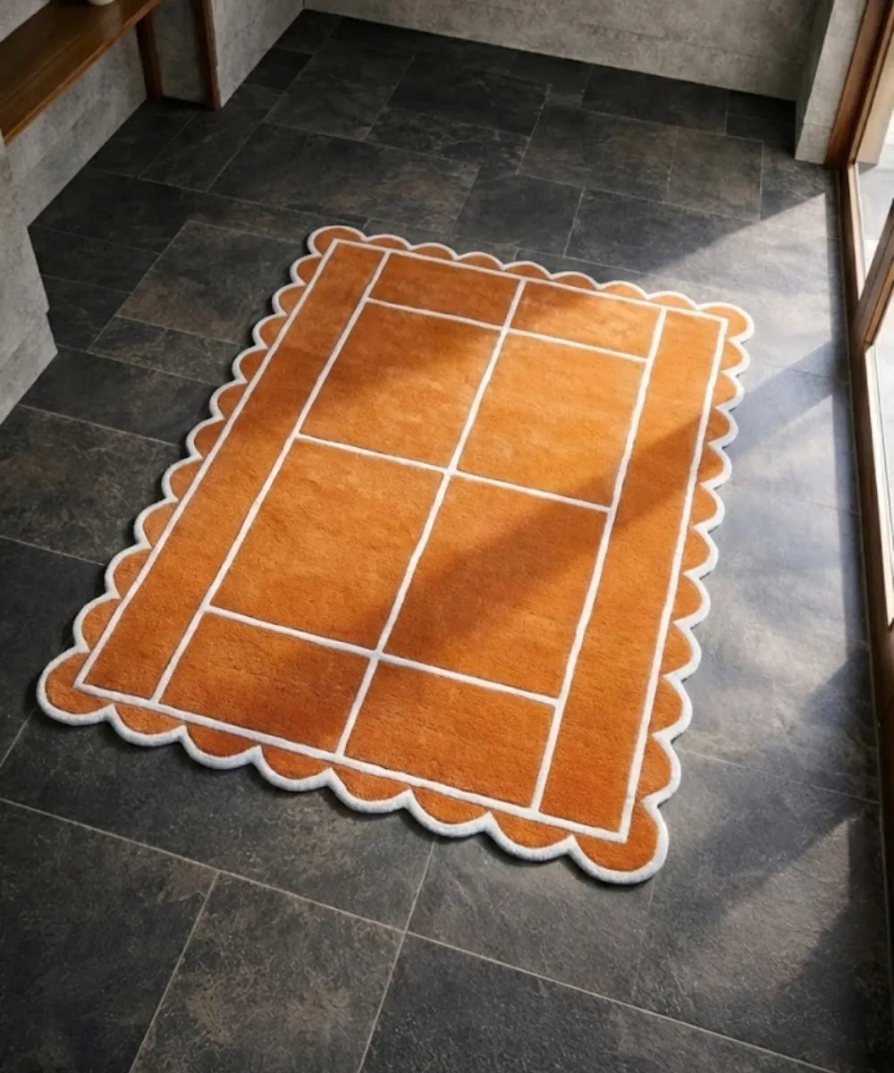 Hand-tufted using premium wool, this modern area rug offers a plush, supportive texture suitable for everyday living. The scalloped edges soften the geometry, making the rug feel warm rather than rigid.
