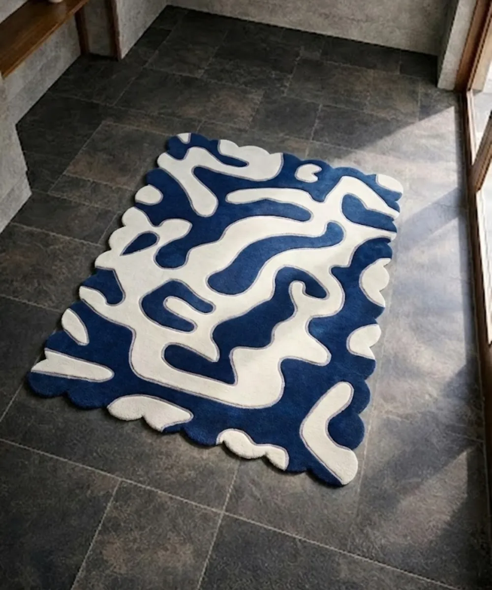 Perfect as a living room rug, bedroom rug, or reading area rug. This blue rug works well with light walls, natural fabrics, and modern furniture. Style it with a linen cushion, muted decor pieces, or soft lighting for a calm yet elevated look.