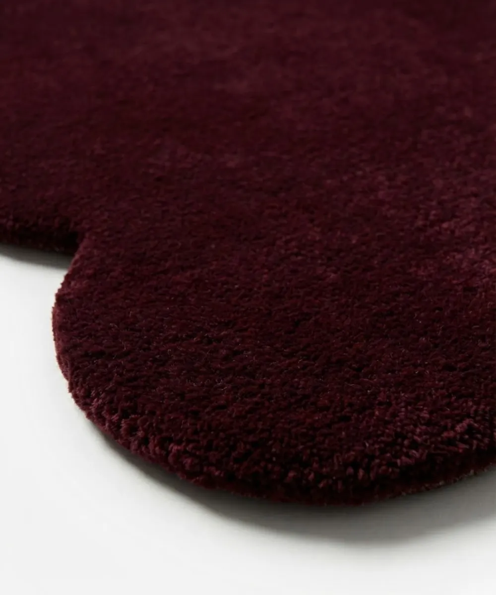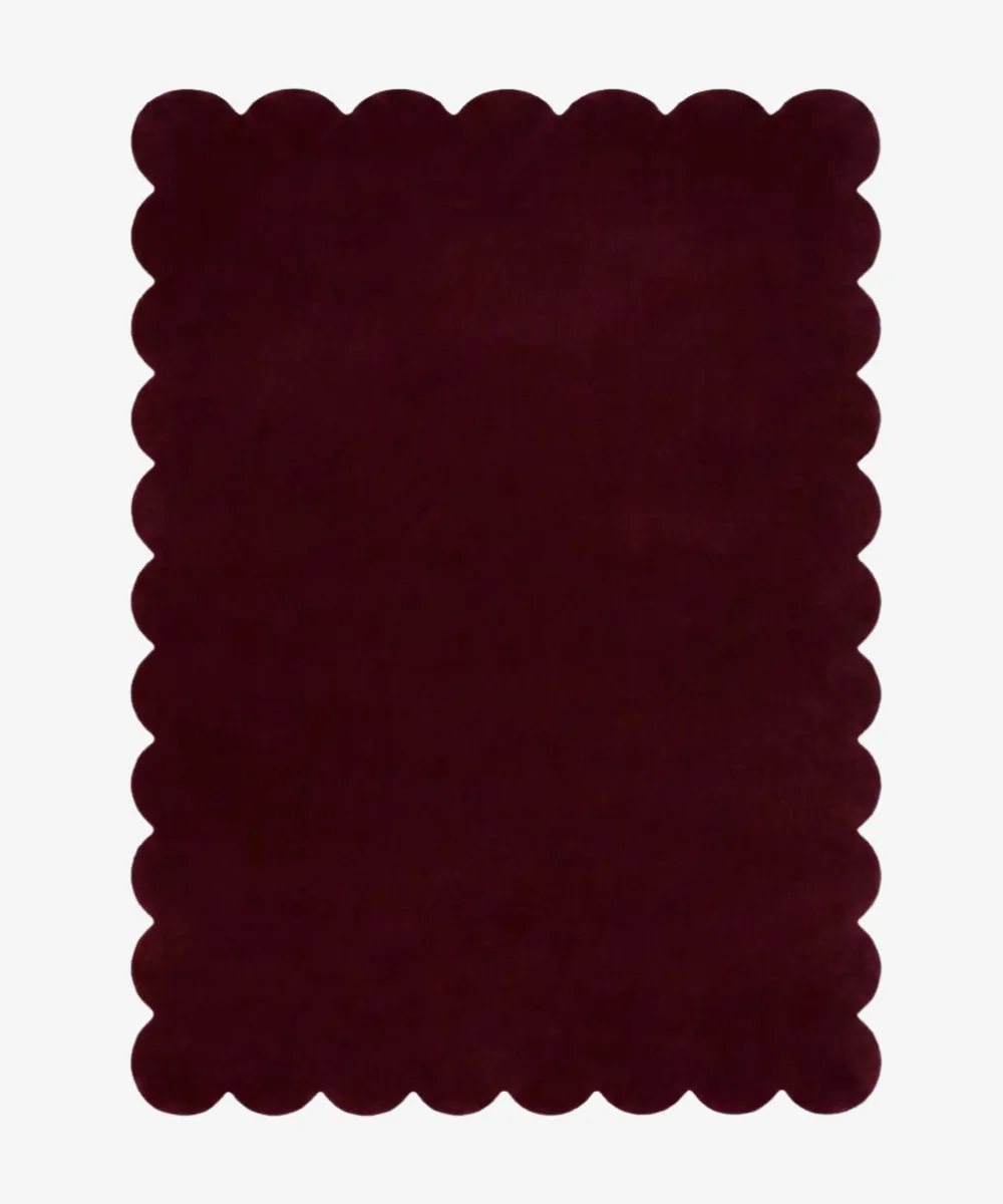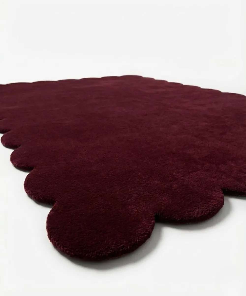 Merlot Plum rug is inspired by deep sunset hues and soft architectural curves. Its scalloped outline brings a delicate rhythm to the intense plum shade, creating a balanced statement piece for living rooms, lounges, or moody reading corners. The unique design adds quiet drama without feeling heavy.