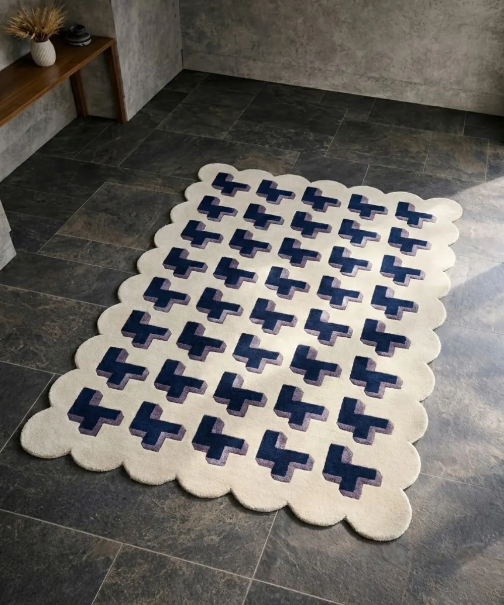 Ideal as a living room rug, creative studio rug, or statement bedroom rug. This geometric rug pairs beautifully with neutral furniture, soft grays, warm wood, and minimal decor. Let it anchor the room while allowing the design to pop out. Custom sizing available on request. Discover premium geometric rugs crafted for modern living from Scalloped Rugs geometric collection.