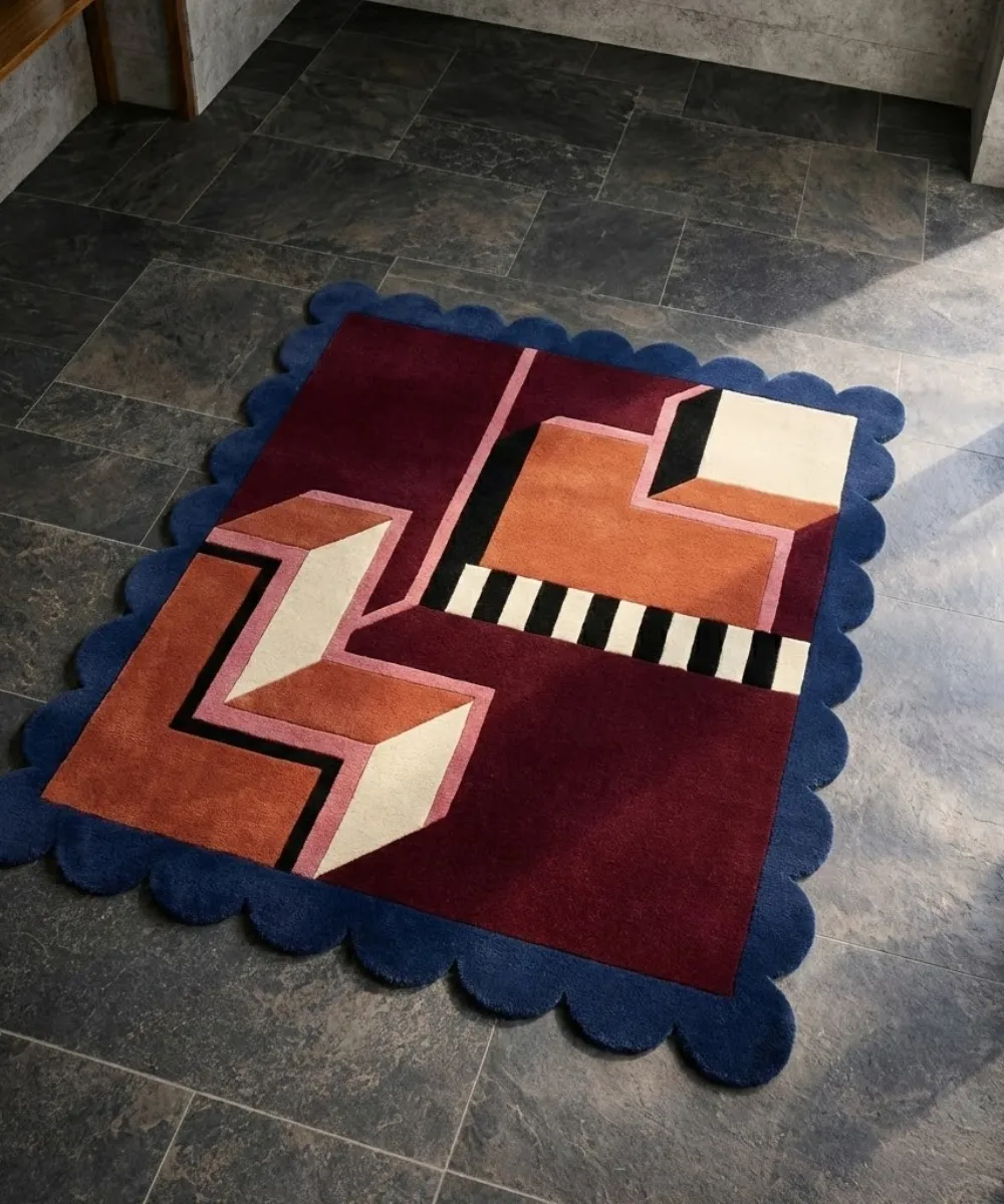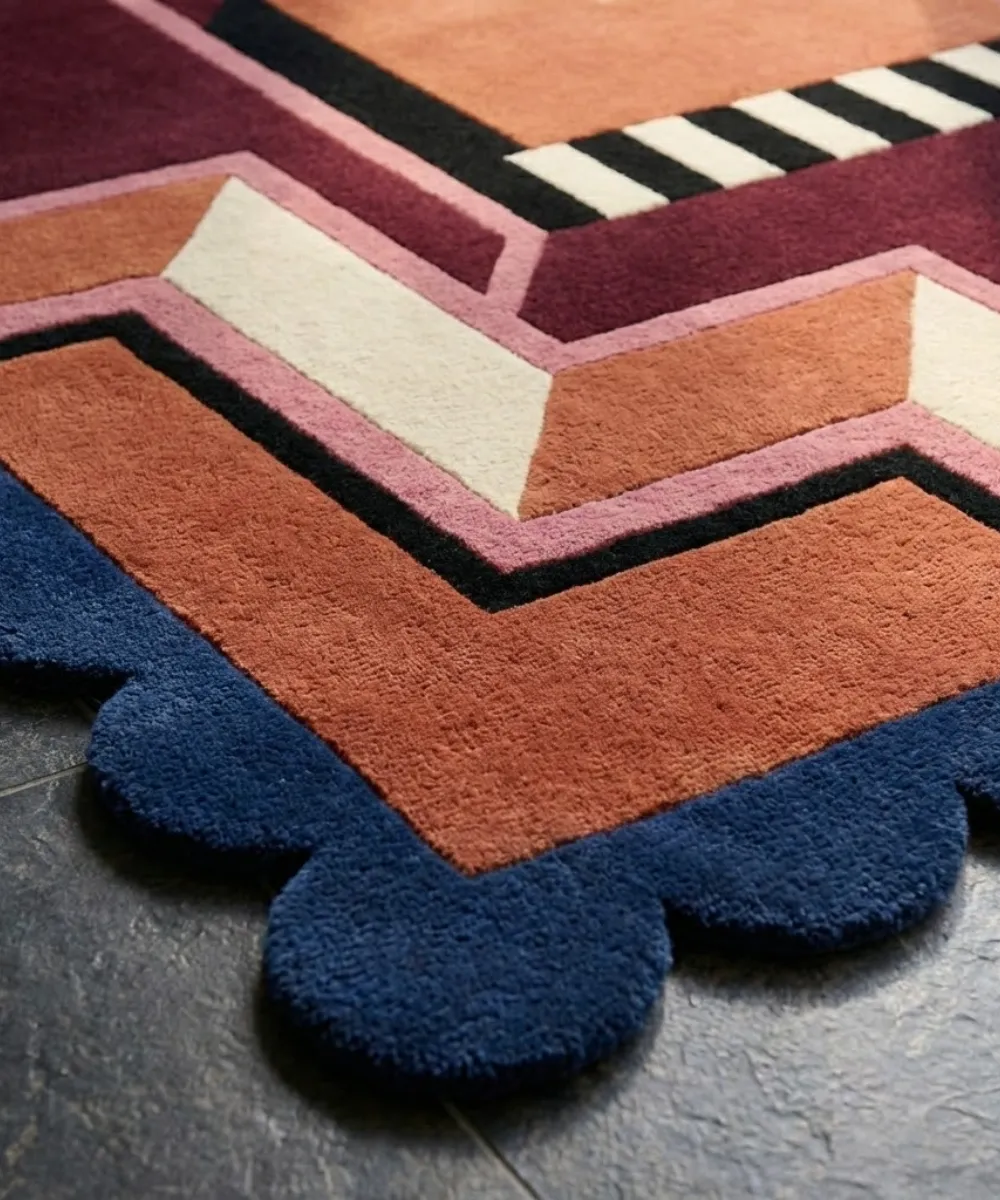 Custom sizing available on request. Explore abstract rugs designed for modern living from Scalloped Rugs exclusive collection..