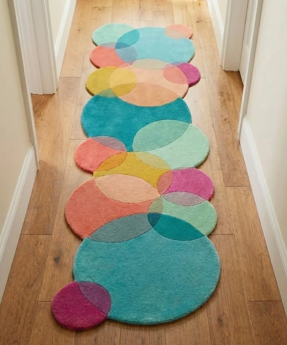 The Pastel Tide scalloped rug brings lightness, softness, and gentle movement into your home. Inspired by flowing tides and airy color palettes, this modern pastel rug features soothing hues arranged in smooth circular forms. Itโ€™s playful yet refined, making it perfect for relaxed, joyful interiors.