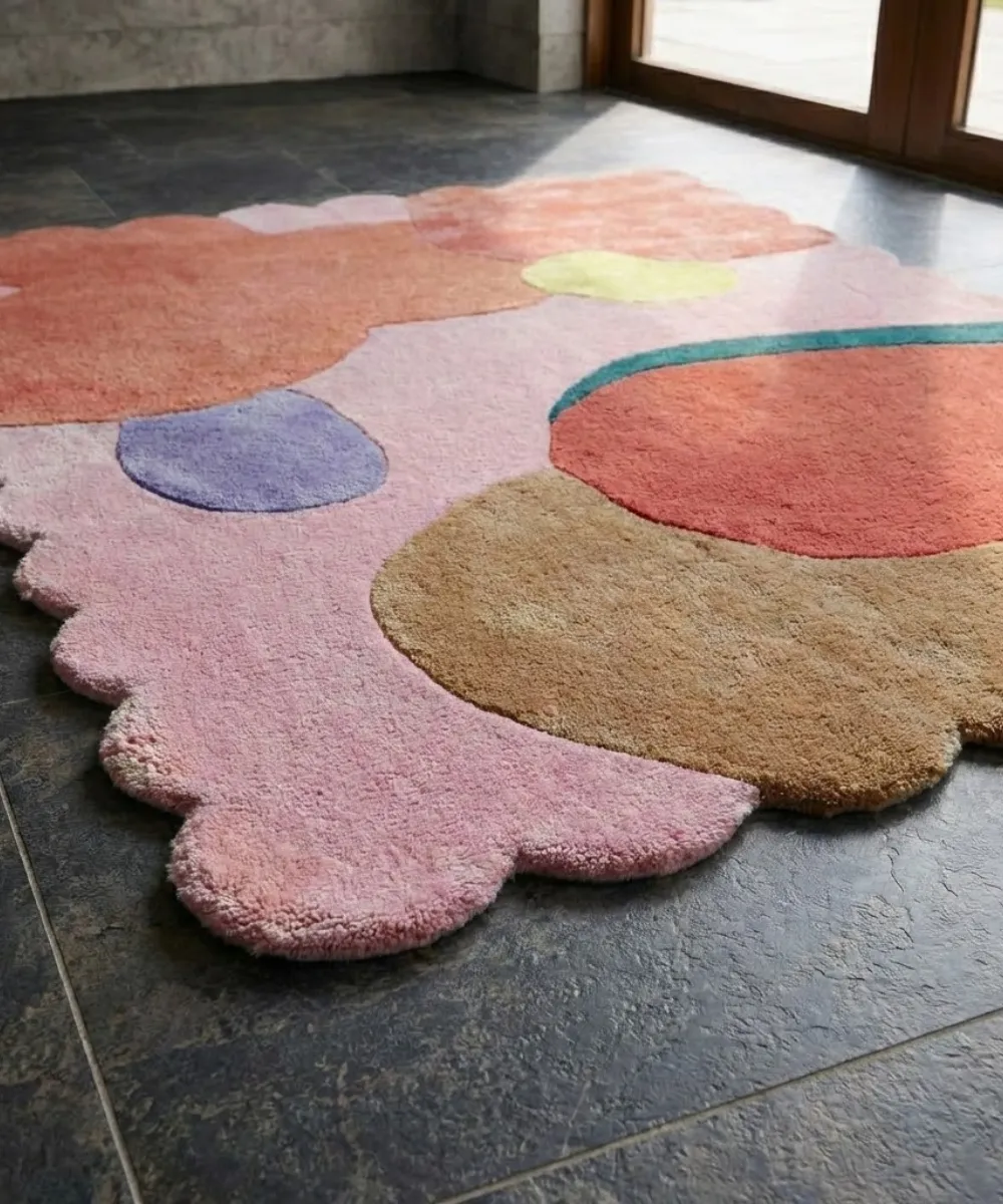 True quality takes time. Our rugs are hand-tufted using dense, premium wool to ensure a plush feel that machines cannot replicate. After tufting, we hand-carve the borders to give the scalloped edges a sharp, distinct definition. The result is a luxurious, thick texture that transforms your room.
