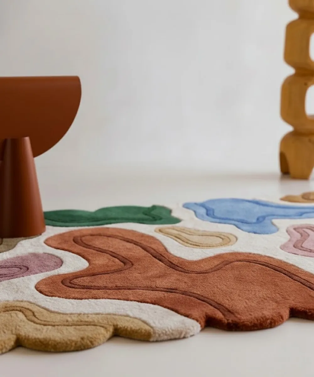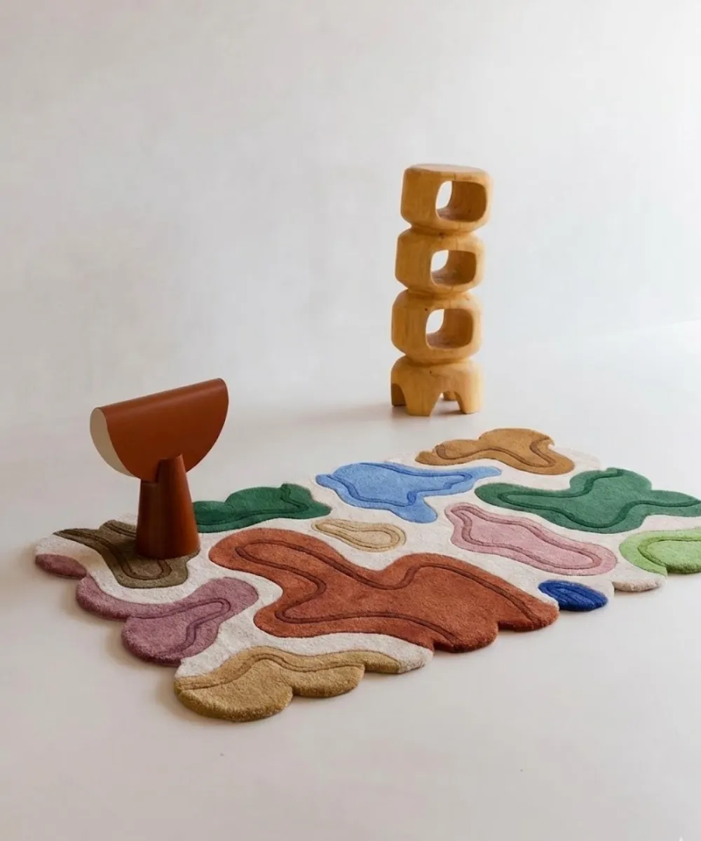 Terra Pebble is inspired by stones, soil, and natural terrain. This modern woolen rug features abstract pebble-like forms in earthy tones, creating a grounded, organic aesthetic that feels timeless and unique.