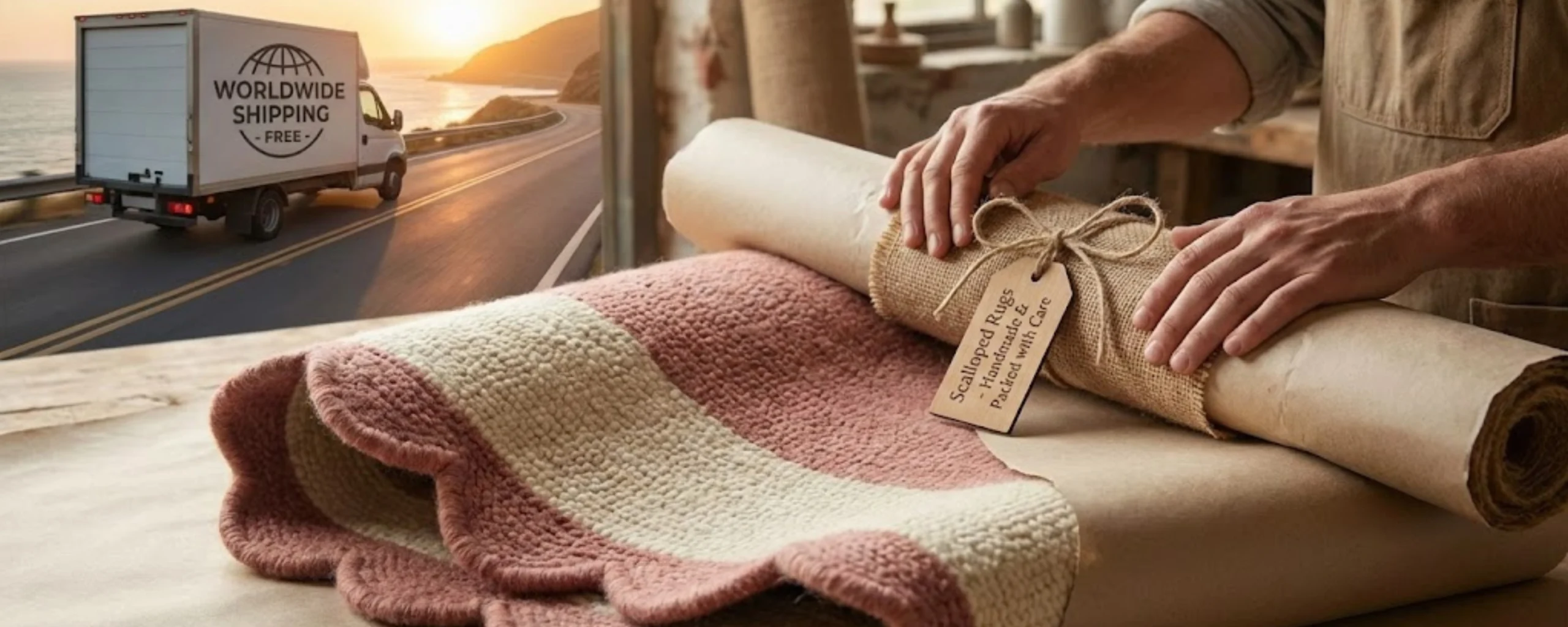 At Scalloped Rugs, shipping is more than logistics. It’s the final chapter of a handcrafted story made for your home. Your rug is made with care, packed thoughtfully, and shipped with the promise that it will arrive safely. If you ever need us for changes, clarifications, or if you don’t find your question answered above, please reach out to Scallopedrugs@gmail.com anytime. We respond with warmth, not templates.